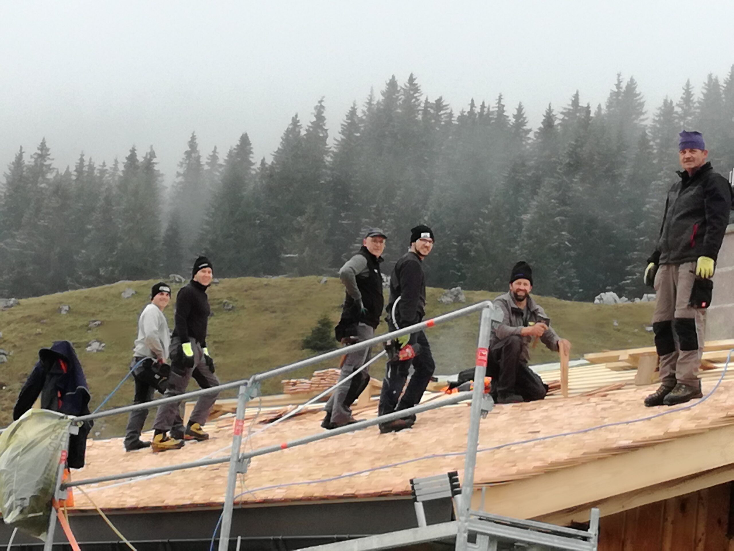 Das 2020 erneuerte Schindeldach verleiht der Hütte nicht nur Schutz, sondern auch einen traditionellen Charme.